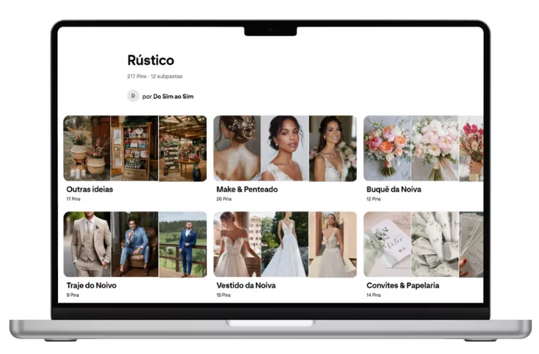 O conceito visual do seu casamento começa aqui! Preparamos um template para você reunir todas as suas ideias e criar o seu mural de inspirações. Assim, as decisões relacionadas ao conceito e ao visual do casamento se tornam muito mais claras e fáceis de tomar.