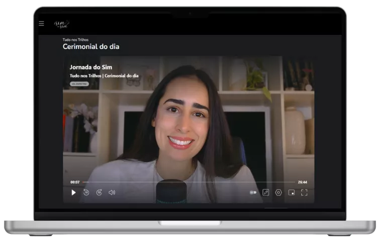 Você terá acesso a videoaulas gravadas, para assistir no seu ritmo, que vão te guiar ao longo dos onze passos da Jornada do Sim, tudo de forma prática e organizada em nossa plataforma. As aulas são ministradas pela Gabi, assessora e criadora do método, e cada módulo corresponde a um passo da Jornada.